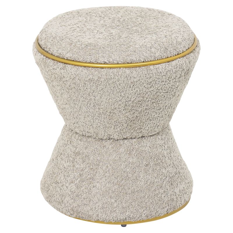 STOOL ROUND LINNER HM9604.18 BOUCLE FABRIC BEIGE-GOLD DETAIL Φ38,5x43Hcm.