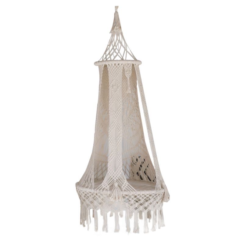 Hammock HM9345 is the new addition to our range. Throughout time, hammocks are the epitome of carefree and relaxation. We offer you this hammock in the style of a round hanging nest, made of macrame woven cotton rope! All you need is a hanging point and let the nest hammock take care of your rest with its gentle rocking.