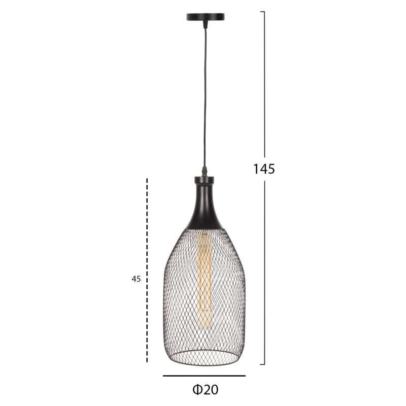 CEILING PENDANT LAMP HM4105 BLACK METAL MESH CAP Φ20x145Hcm.