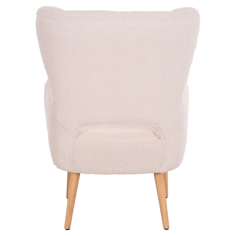 We present the MYLIE armchair-bergere, in WHITE color with legs in natural wood color. The high backrest with a beautiful opening at the back, and its “bucket” design, give a special beauty to the armchair in combination, of course, with the high-quality boucle fabric. The seat is comfortable in response to the character of the armchair, while the characteristic of this armchair is that it sports strong curves both high on the back and on the arms. It is modern, combining style and comfort, and you can place it next to the fireplace, in a window or even in your bedroom, and let yourself be embraced by it.