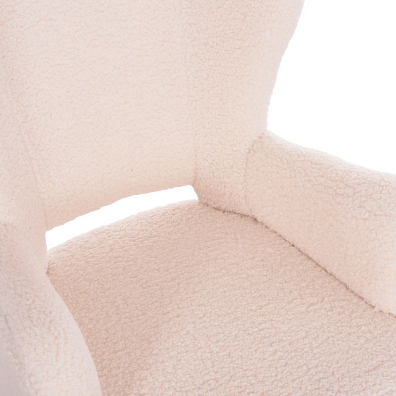 The whole armchair is upholstered with high-quality boucle fabric. This is any fabric that has a knot-curl in its weave. It is made of almost all raw materials (although it is usually synthetic) with special knotted threads or highly twisted threads, so that it has a curly surface. It does not wrinkle and can be plain, melange, checkered or tweed.