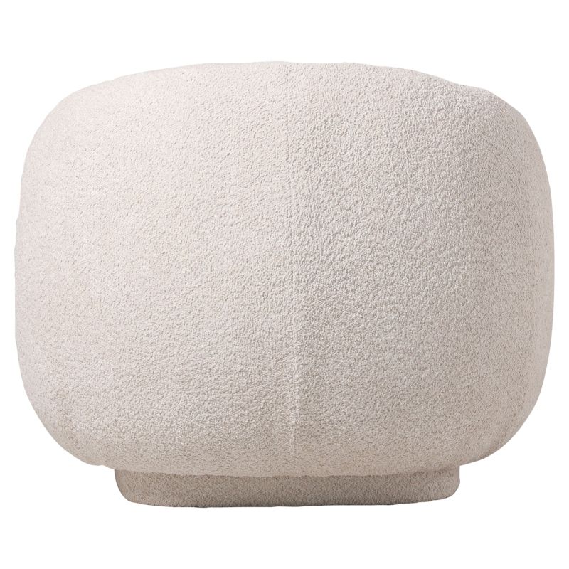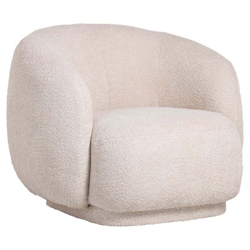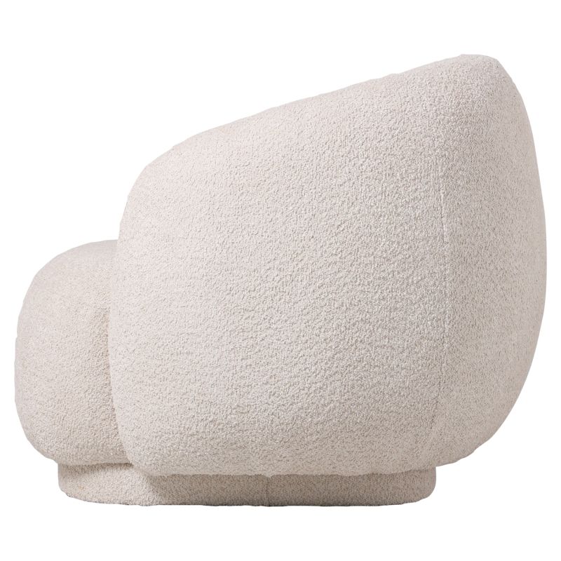 The whole armchair is upholstered in high-quality boucle fabric. This is any fabric that has a knot-curl in its weave. It is made of almost all raw materials (although it is usually synthetic) with special knotted threads or highly twisted threads, so that it has a curly surface. It does not wrinkle and can be plain, melange, checkered or tweed.