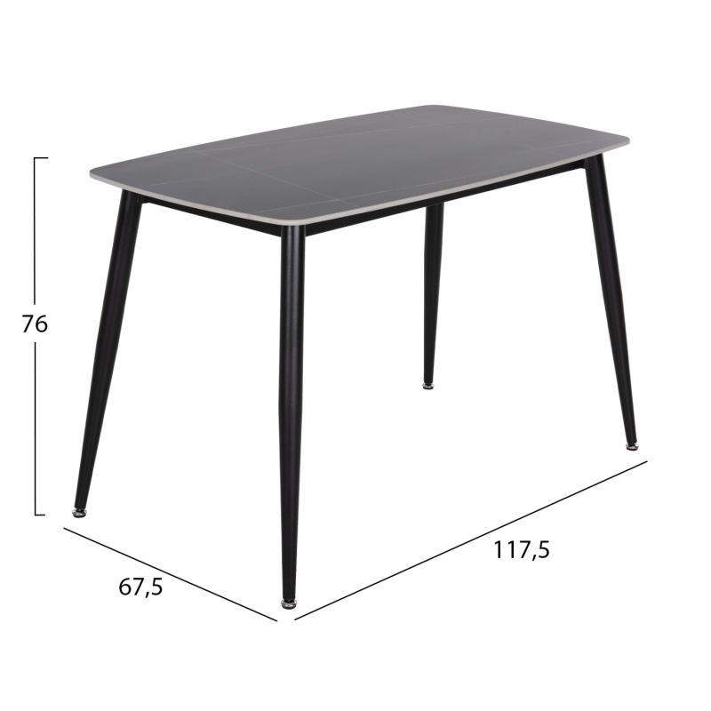 DINING TABLE RAVEN HM9854.02 CERAMIC TOP IN BLACK MARBLE-BLACK METAL LEGS 117,5x67,5x76Hcm.