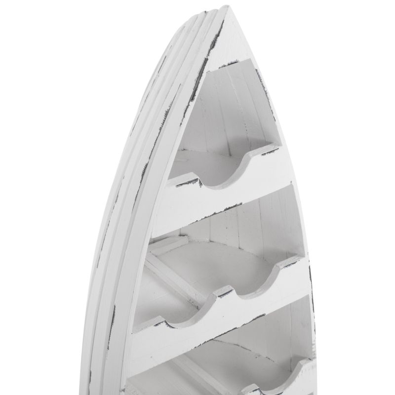 The wooden bottle rack ΗΜ9493 in antique white color, is useful for any space. It is made in the shape of a vertically fixed boat, with 4 masterfully carved rows for placing 10 bottles. It is a beautiful construction that is both a piece of decoration and a practical object for organizing and storing bottles.