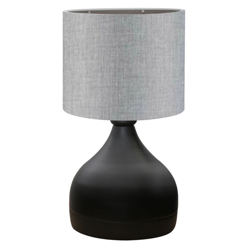 TABLE LAMP HM7593.03 BLACK METAL BODY GREY DRUM SHADE FABRIC Φ18,5x45Ηcm.