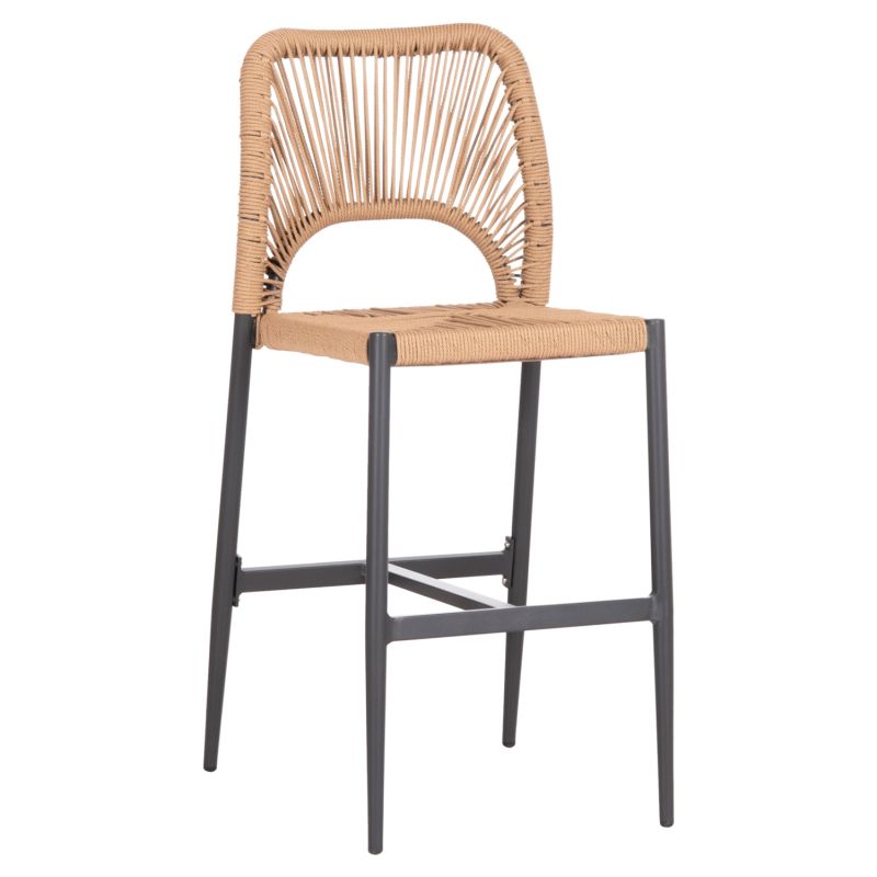 BAR STOOL MEDIUM HEIGHT NOJO HM5920.02 ANTHRACITE ALUMINUM--BEIGE SYNTHETIC RATTAN 40x55.5x99Hcm.