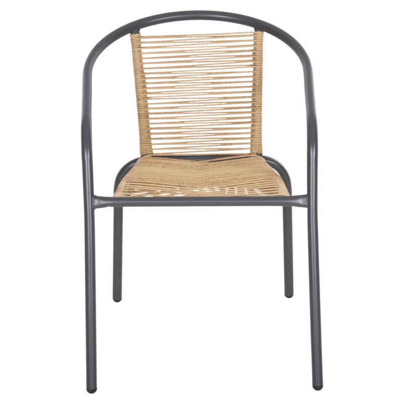 The SWIFTER outdoor armchair is modern, comfortable, and stable! Its frame is metallic in GREY color and the main feature is the semi-circular backrest that ends with a strong slope at the arms of the armchair with a very simple design. The back and seat are made of synthetic Rattan in NATURAL color. Of course, it is stackable, which increases its practicality.