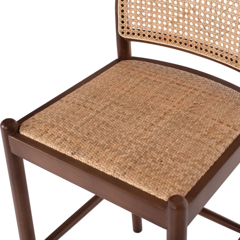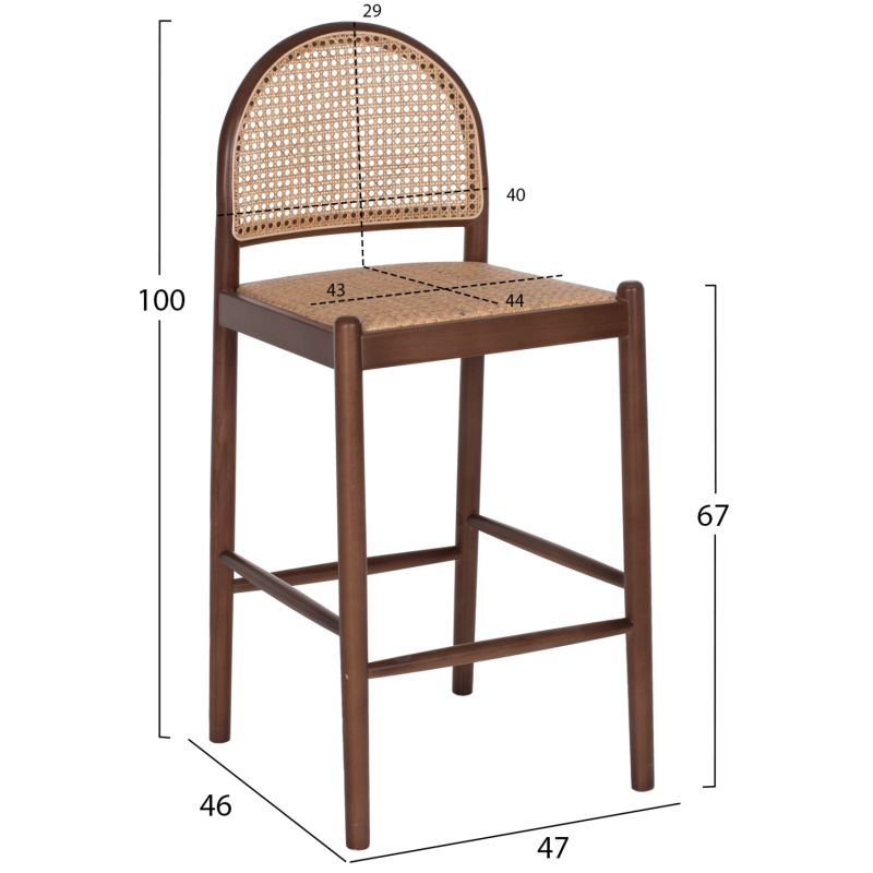 BAR STOOL BEECH WOOD WALNUT RATTAN BEIGE HALF-ROUND BACK 47x46x100Hcm.HM9408.04