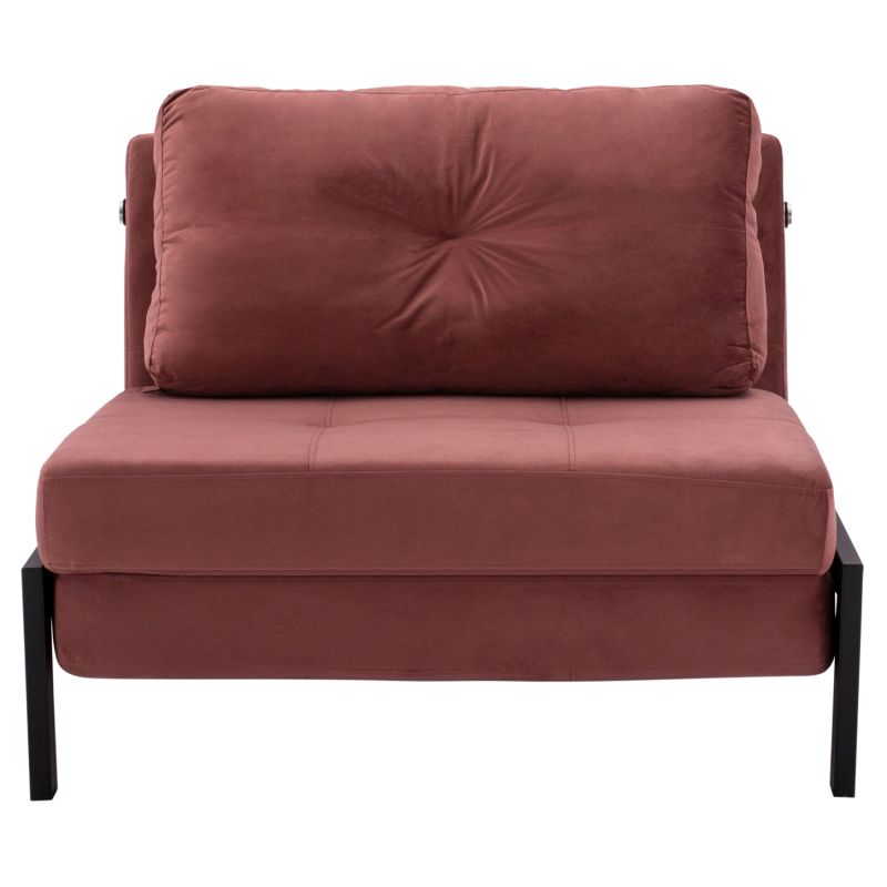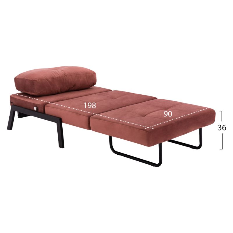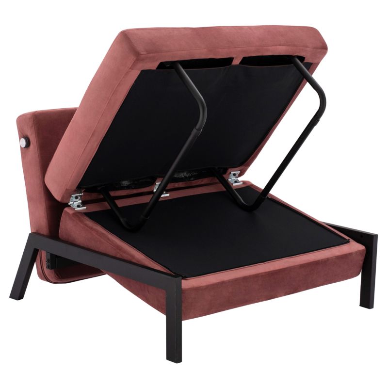 The CONSTANCE armchair-bed is the epitome of practicality and beautiful style. It rests on metallic black legs, while its entire lining has been made with DUSTY PINK velvet fabric, thus creating a beautiful two-tone coloring. The element that makes it stand out is that with a simple move it can be turned into a bed offering a quality solution for unexpected overnight stays, or even as a second bed in homes with limited space.
