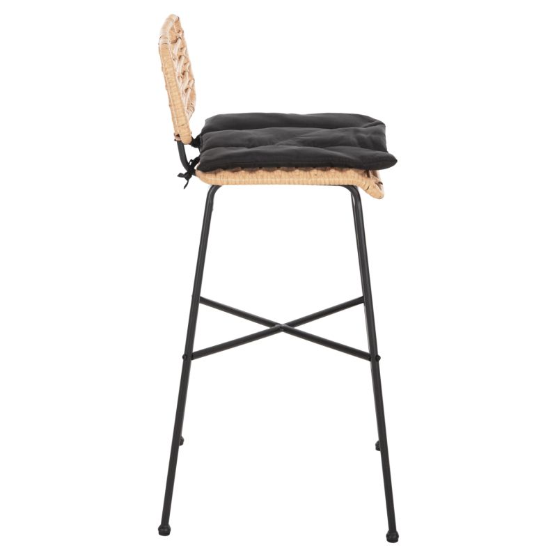 BAR STOOL HIGH SEAT ALLEGRA HM5708.11 METAL&CUSHION IN BLACK-BEIGE WICKER 48x49x99,5Hcm.