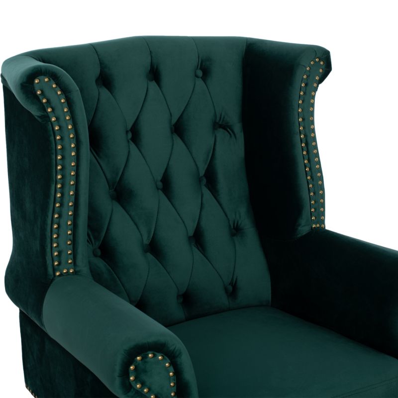 HM0053.03 armchair POLINA, cypress green velvet, chesterfield-style