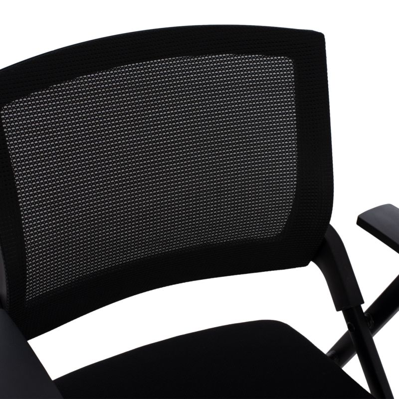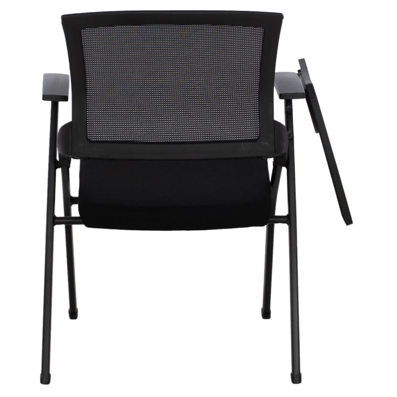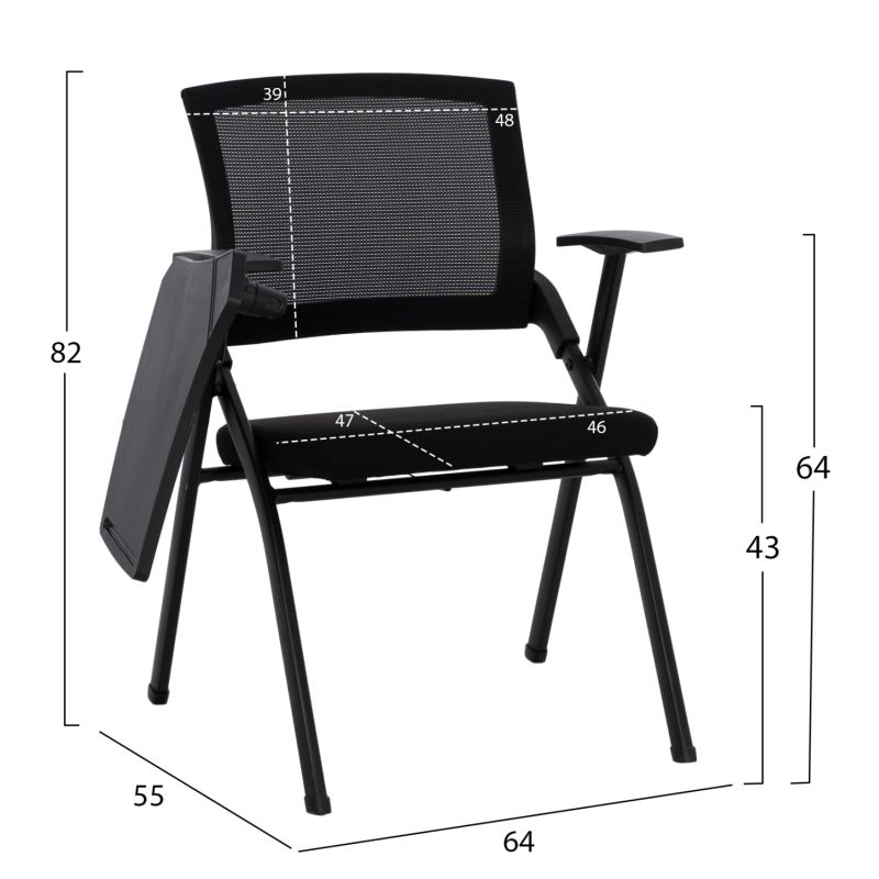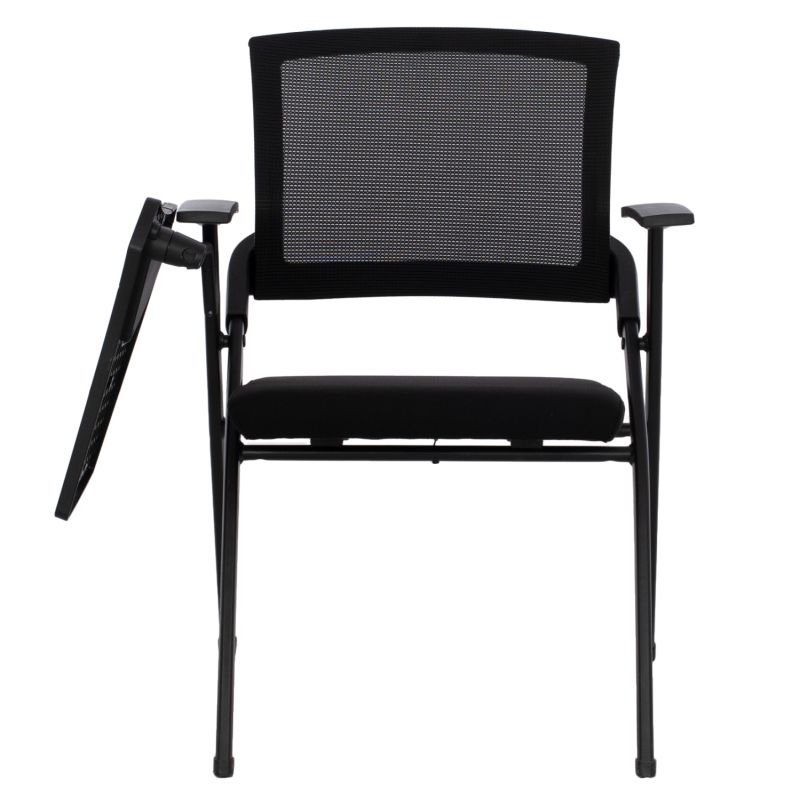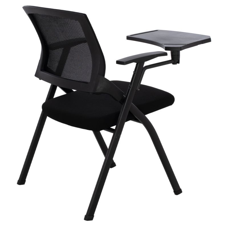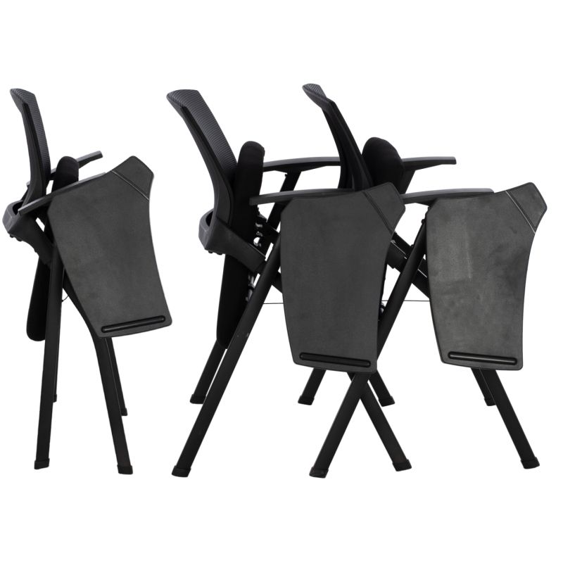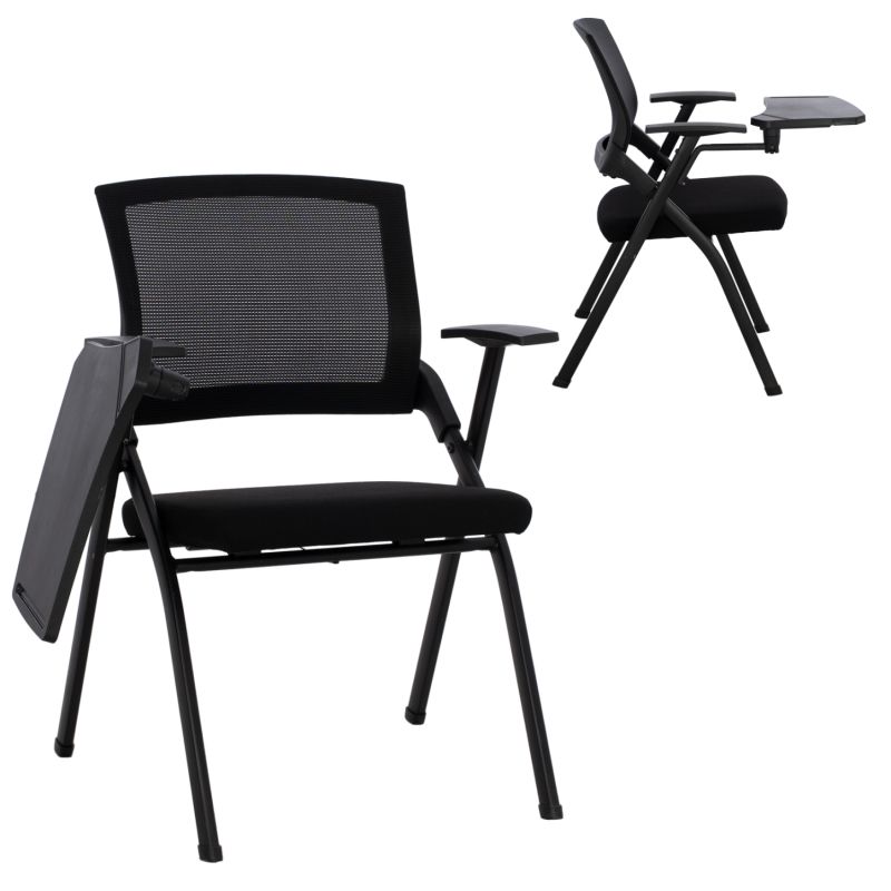 An ergonomic folding conference chair, with a desk that rises so that in each case the one sitting sits has the space to write and lift the lectern when he wants to get up from the chair.