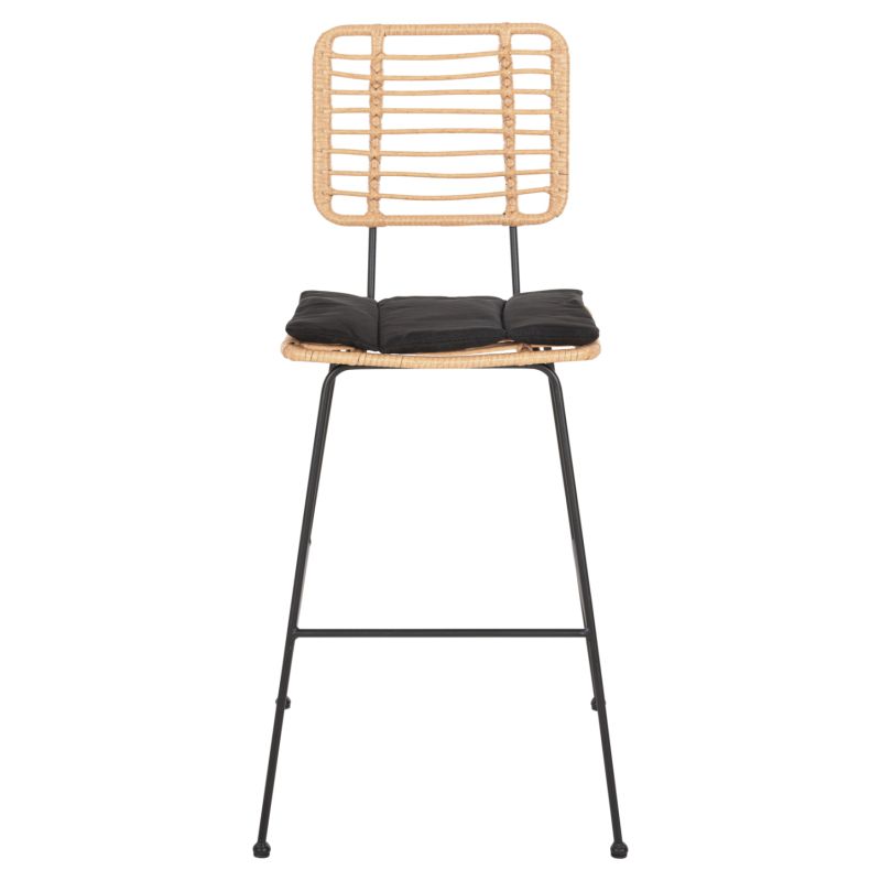 BAR STOOL ALLEGRA HM5455.11 METAL&CUSHION BLACK-WICKER BEIGE 56x59x116.5Hcm.