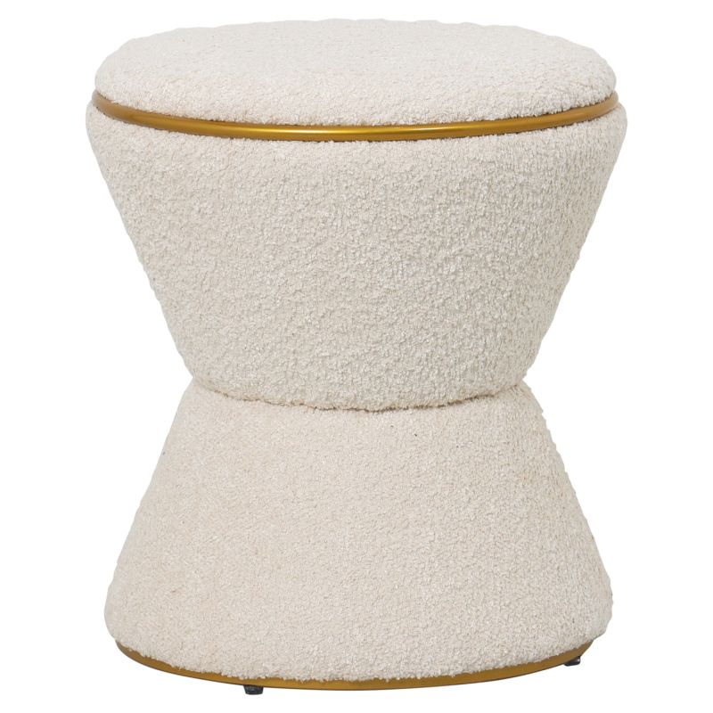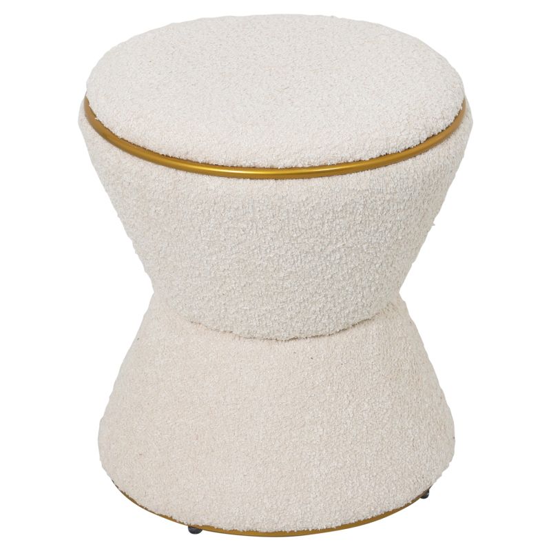 STOOL ROUND LINNER HM9604.16 BOUCLE FABRIC ECRU-GOLD DETAIL Φ38,5x43Hcm.