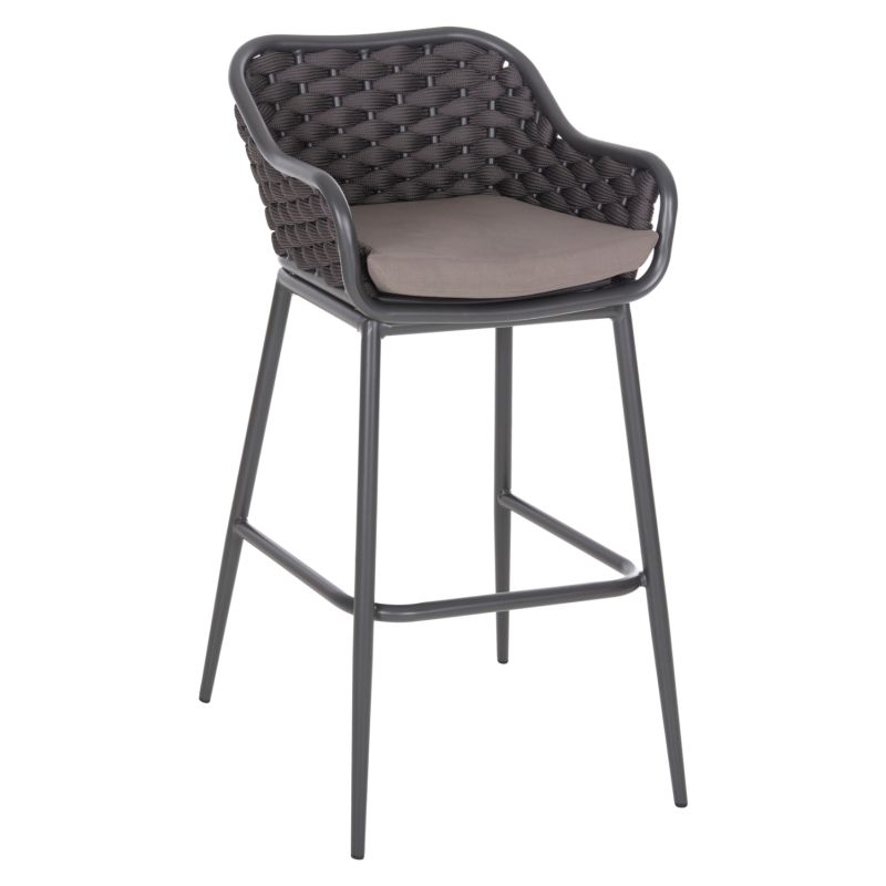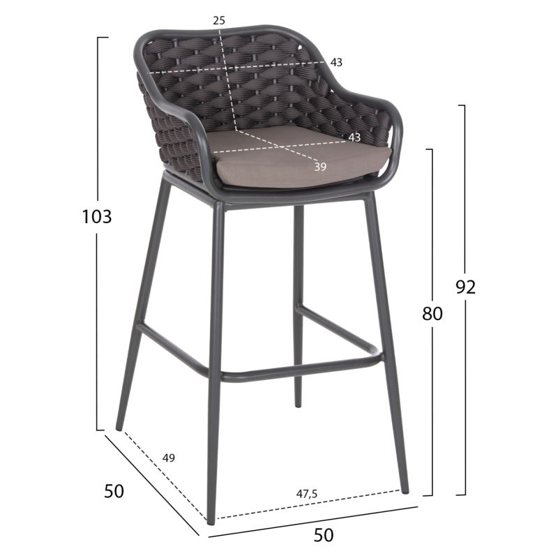 BAR STOOL ALUMINUM FRAME DARK GREY-ROPE BROWN 50x50x103Hcm.HM5862.01