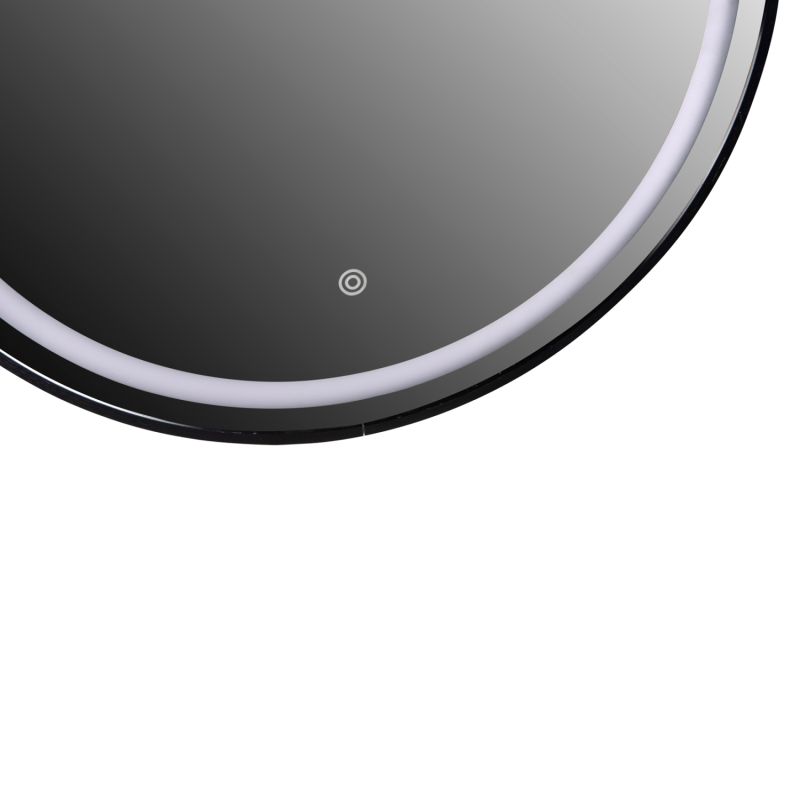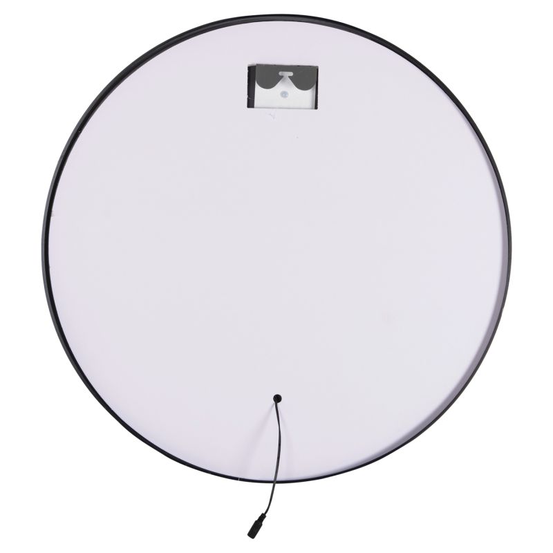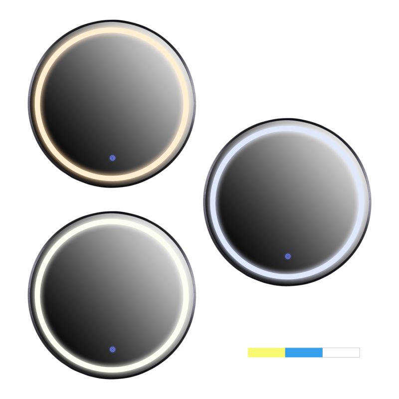 HM9579.01 is a round wall mirror with a BLACK frame, elegant and in a highly satisfactory dimension. However, what differentiates it from ordinary mirrors is that it has LED lighting integrated in a circular arrangement following the "line" of the frame. The lighting is activated by a touch button (in blue) on the front bottom of the mirror and produces 3 different colors of light. Warm (yellowish), light blue, and natural white, activated by pressing the same touch button. A useful "tool" mainly for the bathroom but also for any other room you need a mirror with lighting!