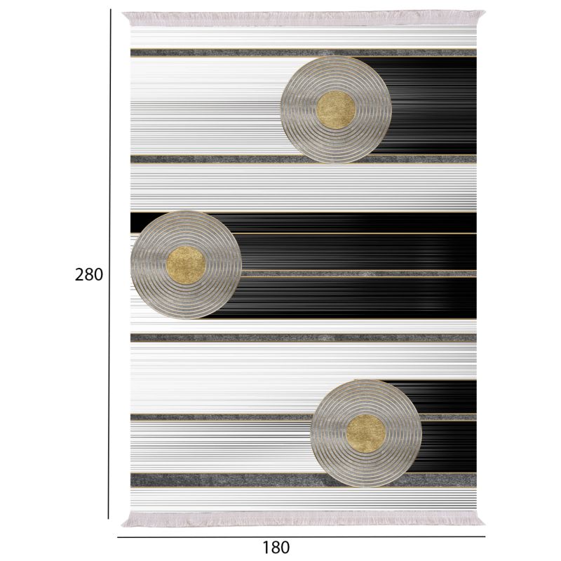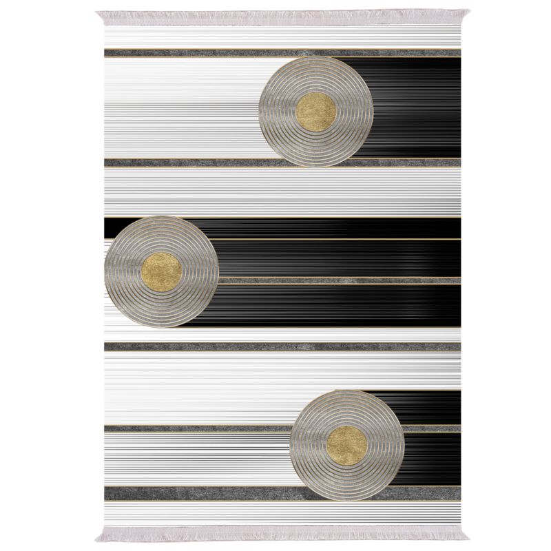 LIVING ROOM CARPET JOSIANE WITH FRINGES WHITE-BLACK-GOLD 180X280cm.HM7723.24