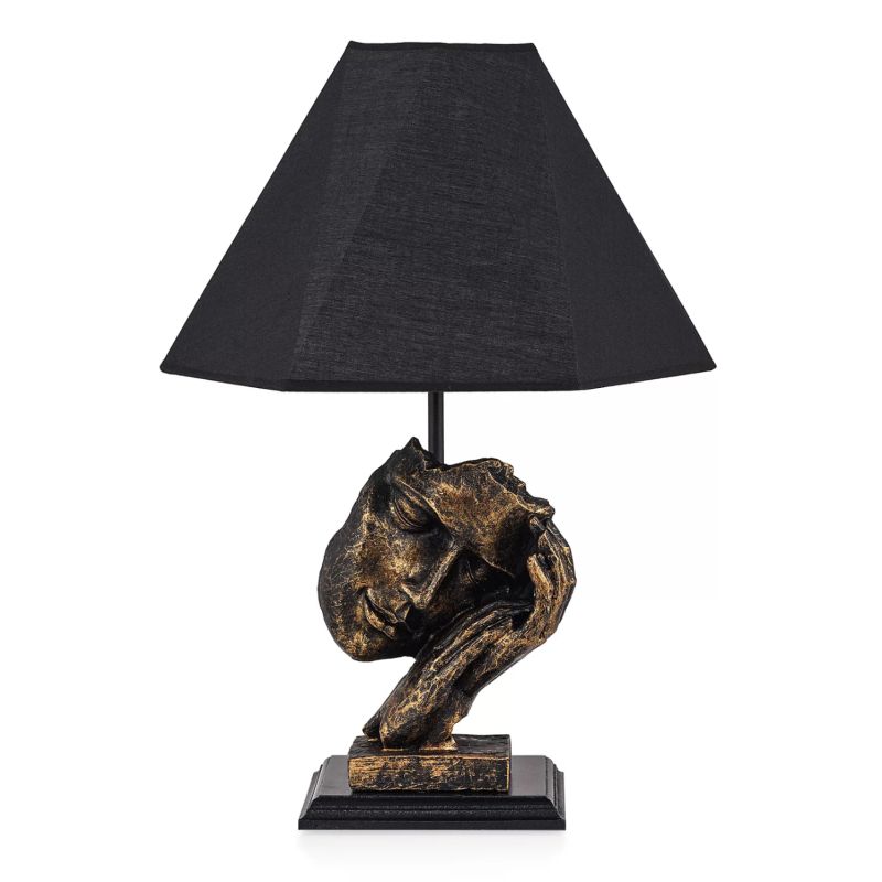 HΜ7668.01 is a unique decorative table lamp. The "cap" of the lamp is a polygonal trapezoid in BLACK color, while the support column is simple. However, on the square base there is a carved illustration that gives another aesthetic to the lamp and to your whole space. An elaborate and elegant table lamp that softly diffuses the light and creates the atmosphere you always imagined for your space, so that you can create your own corner of relaxation or even decoration. Because light means more than a lamp. It means decoration, atmosphere, art, flair, and of course science.