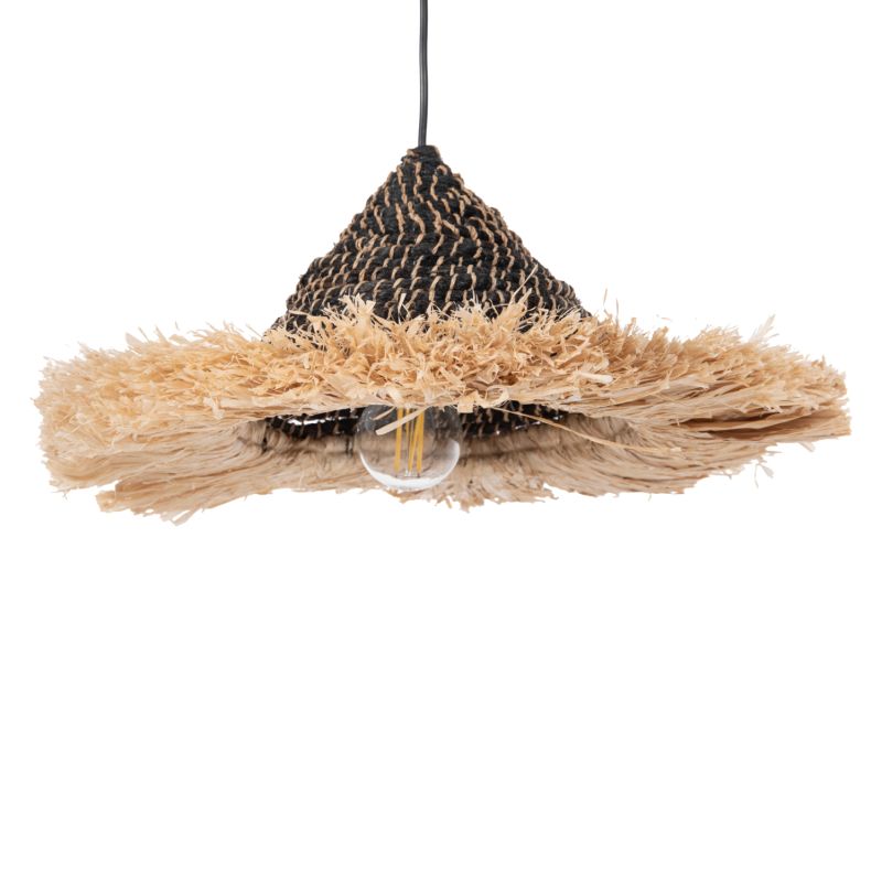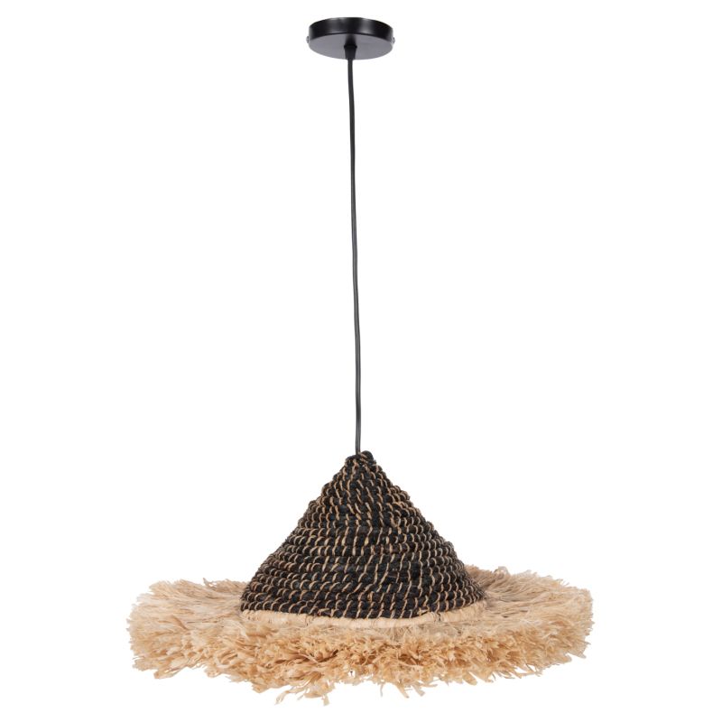 CEILING PENDANT MADE OF SISAL AND ABACA FIBER CAP IN NATURAL-BLACK 50x50x20Hcm.HM7789