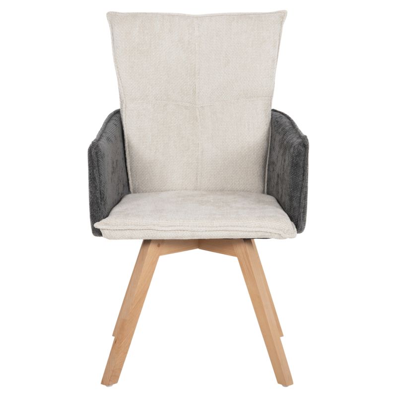 DINING ARMCHAIR REX HM9847.04 BEIGE-GREY FABRIC-BEECH WOOD LEGS 53x60x93Hcm.