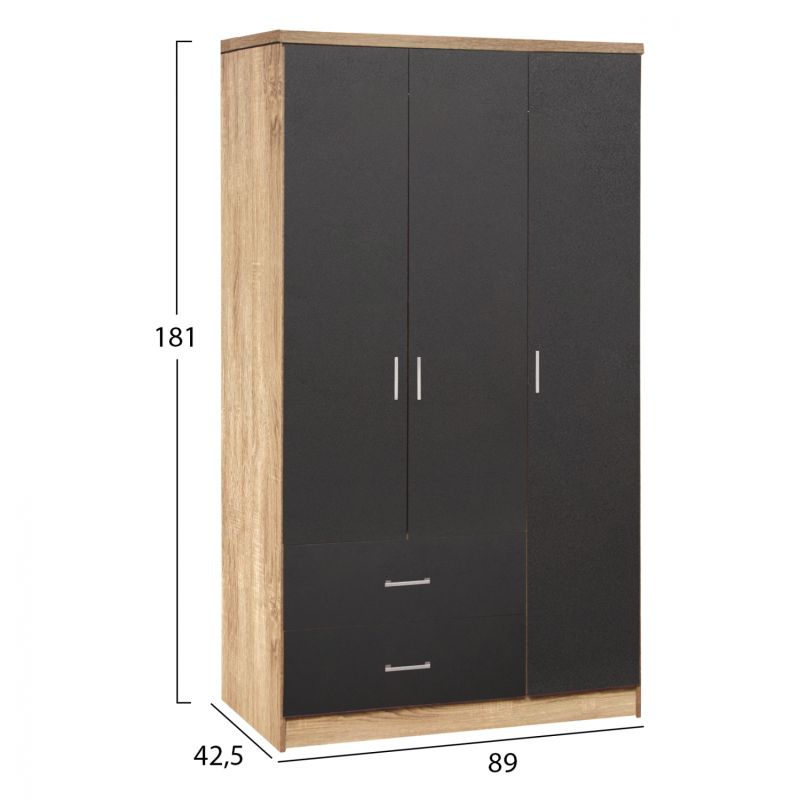 Wardrobe 3 Doors with 2 drawers HM340.04 Sonama 89.2x42x181cm