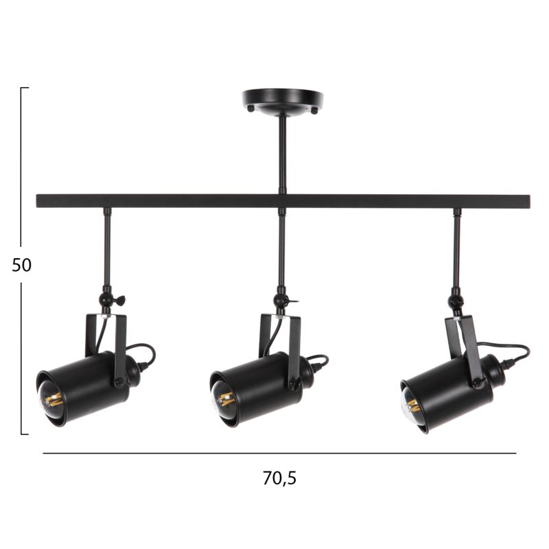 CEILING PENDANT 3-LIGHT FIXTURE HM4124 BLACK METAL SPOTLIGHTS 70,5x14x50H cm.