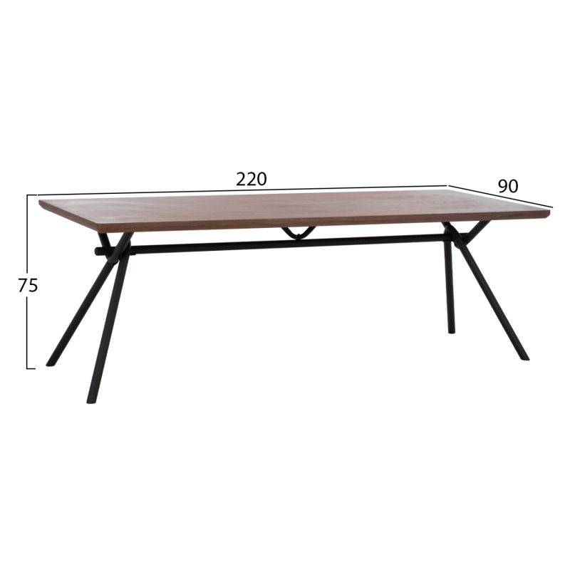 DINING TABLE MANDY HM9303.02 MDF TOP WITH WALNUT WOOD VENEER METAL LEGS 220x90x75H