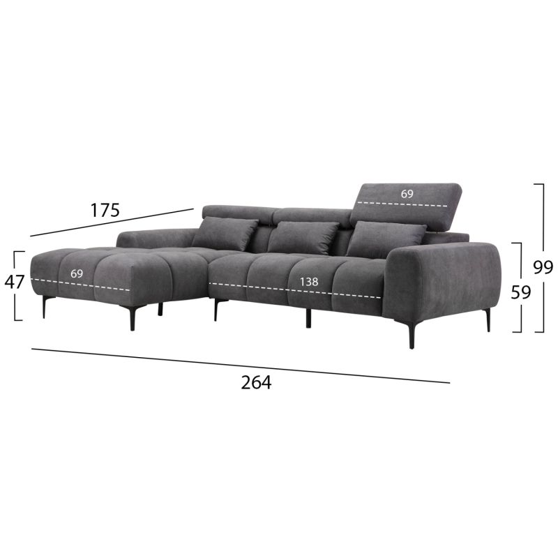CORNER SOFA LEFT DIVYA HM3267.02L SYNTHETIC SUEDE IN GREY 264x175x99Hcm.
