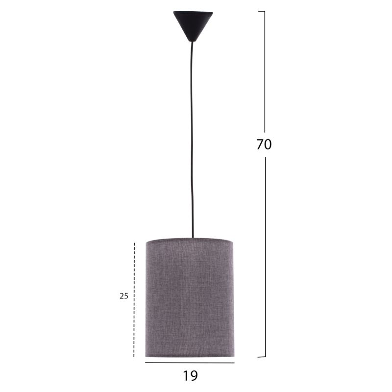 PENDANT CEILING LAMP HM7623.03 GREY FABRIC DRUM SHADE D19x70 εκ.