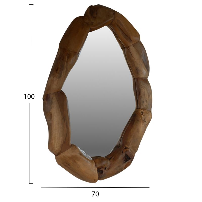 The HM9359 mirror is a peculiar piece in your home decoration! Its design is unconventional with a roughly oval arrangement consisting of pieces of TEAK wood, which in their center "host" the mirror. The wood is in its natural color and the dimensions of the entire structure are “rich”.