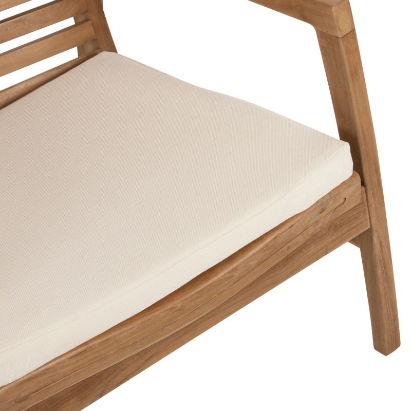 We present to you the beautiful and new DOVER outdoor set in NATURAL color, with a coffee table, 2 armchairs and 1 two-seater sofa. A set that you will love at first sight. The whole set is made of TEAK wood. In particular, the armchairs have a wide and short seat while their backs have a slight inclination towards the back which enhances the comfort they offer, in combination with the comfortable cushions on the seat. The cushions throughout the set are covered with quality fabric in WHITE color and are filled with medium hardness foam materials for maximum comfort. What more could anyone ask for to upgrade their garden, balcony, or yard?