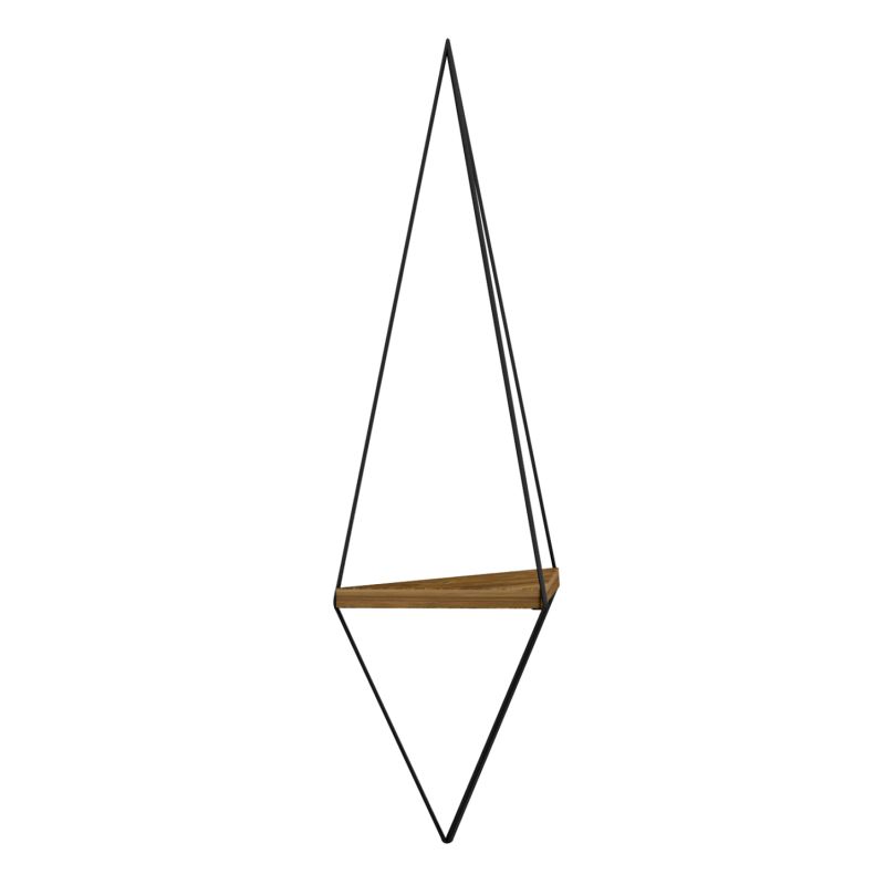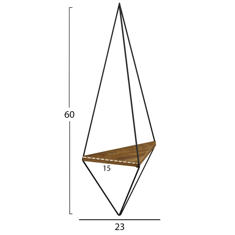 The CANNARD wall shelves combine modern design with practicality. This is a set of 2 shelves in NATURAL color and in the shape of a triangle mounted on BLACK metal rods. Ideal for placing decorations but also for anything else you want to place.