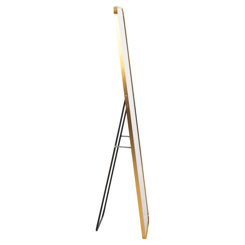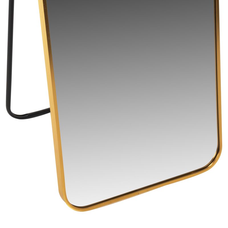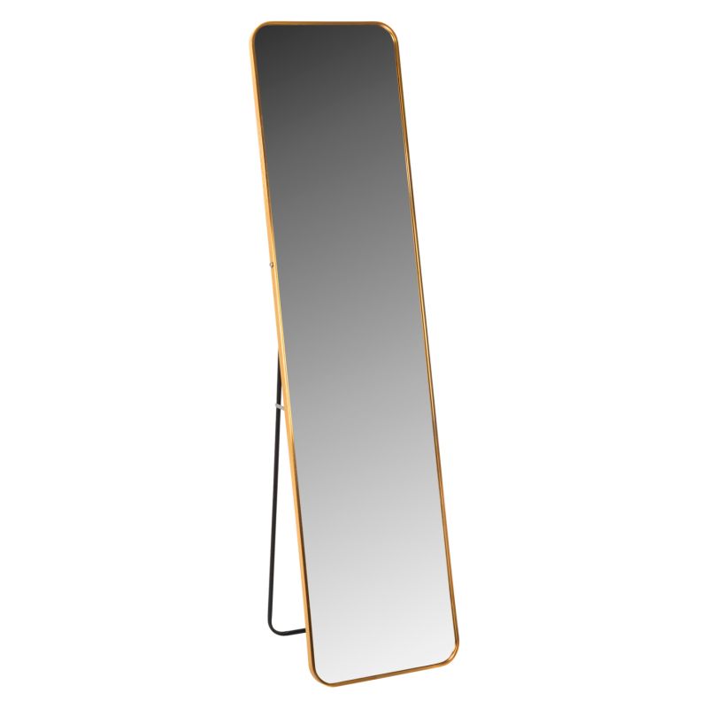 BOELY is a floor standing mirror with GOLD frame, elegant and in a highly satisfying dimension. A useful "tool" for any room that will match your decor, whether it's classic or modern. The support is made with a collapsible aluminum arrangement. The mirror is rectangular with nice, rounded corners and stands beautifully on the floor.