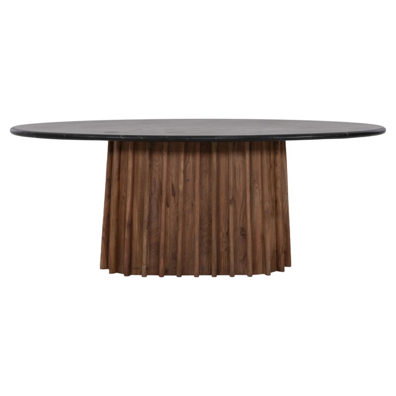 DRAXX is a beautiful oval dining table in large dimensions with a BLACK MARBLE tabletop. The tabletop rests on a central oval cone-shaped pillar made of masterfully carved solid wood. This impressive table will aesthetically upgrade your kitchen or dining room while it can match many different styles and colors in the surrounding space. You can even choose from a wide range of different chairs to match with this table.