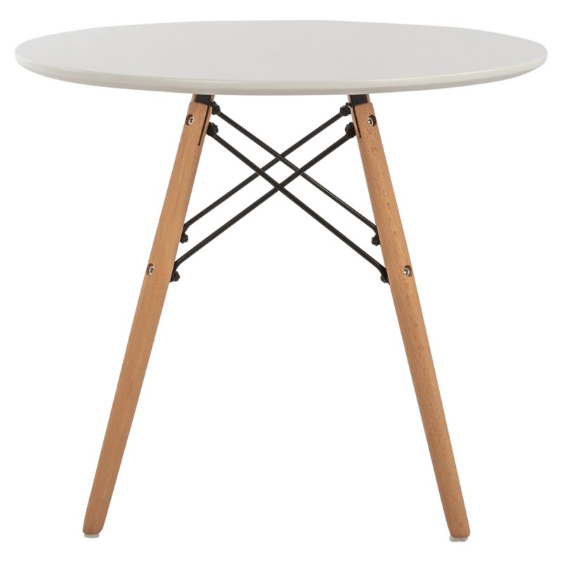 HΜ8451.01 is a round kids’ table, with MDF surface in WHITE color. The 4 legs are natural colored wooden and "open" downwards, while they are "tied" together with metal beams. It is a simple table which can fit aesthetically in almost any kids’ room and will allow our little friends to develop all their…table virtues!