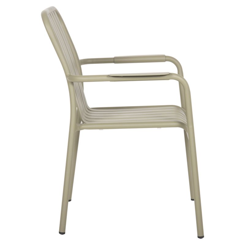 The RACHEL armchair is entirely made of aluminum in DARK OLIVE color. In terms of design, it is simple with beautiful curves and specially widened arms for greater comfort, while the fact that it is STACKABLE makes it particularly practical since you can store it in the smallest possible space.