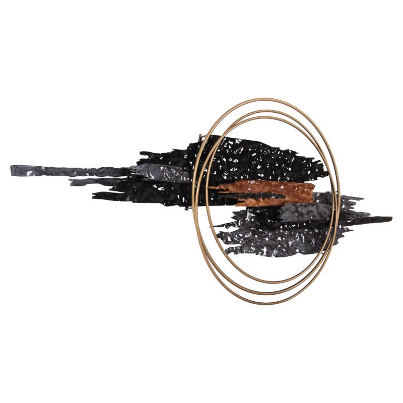 If you wish to decorate your wall in an alternative way to a real painting, then don't hesitate to hang this metal wall decoration. It consists of abstract metal pieces in BLACK and ANTHRACITE color, and GOLD rings. But can you imagine the usefulness of such decorations?