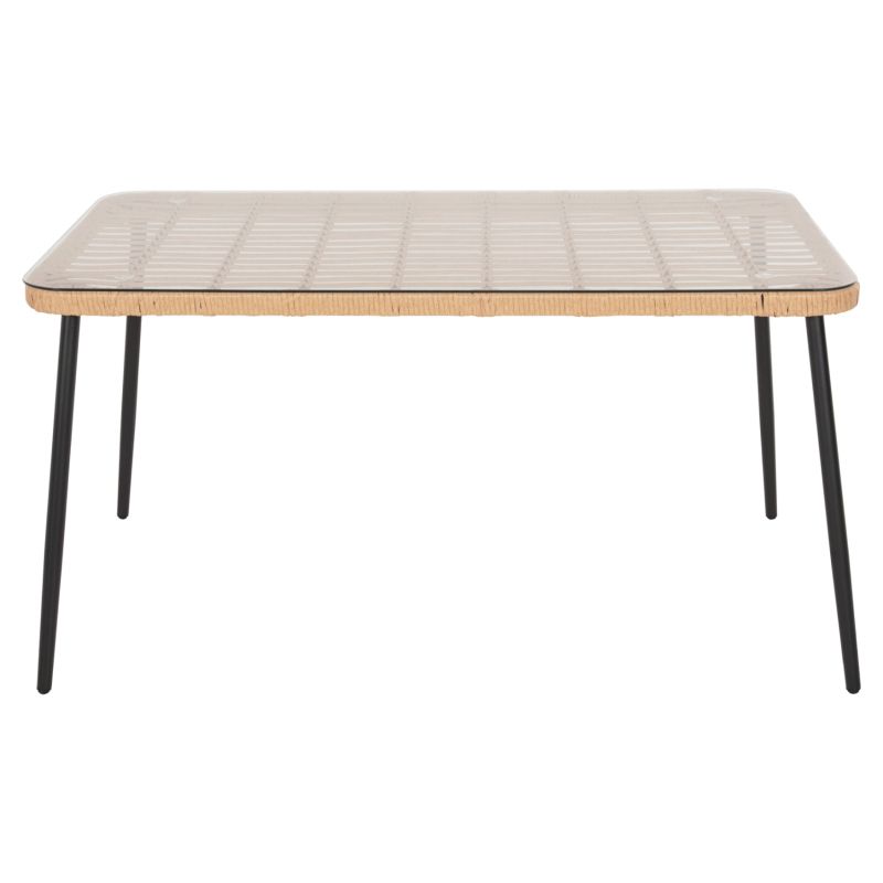 DINING TABLE RECTANGULAR ALLEGRA HM5537.11 BLACK METAL-P.E. RATTAN IN NATURAL 139,5x79,5x73Hcm.