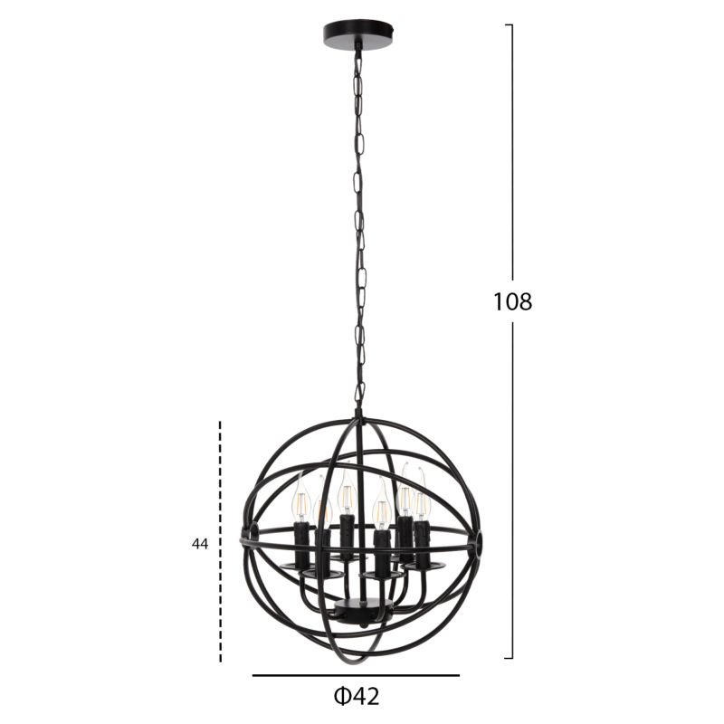 CEILING PENDANT LAMP HM4127 BLACK METAL SPHERE 6-LIGHT Φ42x108Hcm.