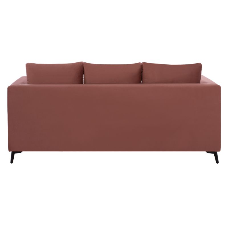 Starting with the basics and the obvious, the velvety upholstery color of this medium-sized sofa is SAHARA 08- dusty pink. It has 3 backrest cushions and 3 seat cushions that will give the perfect feeling of comfort!