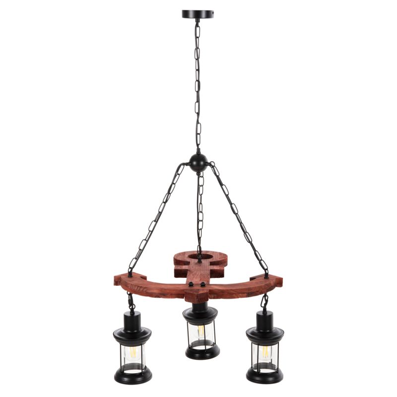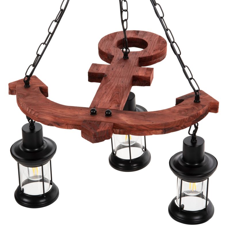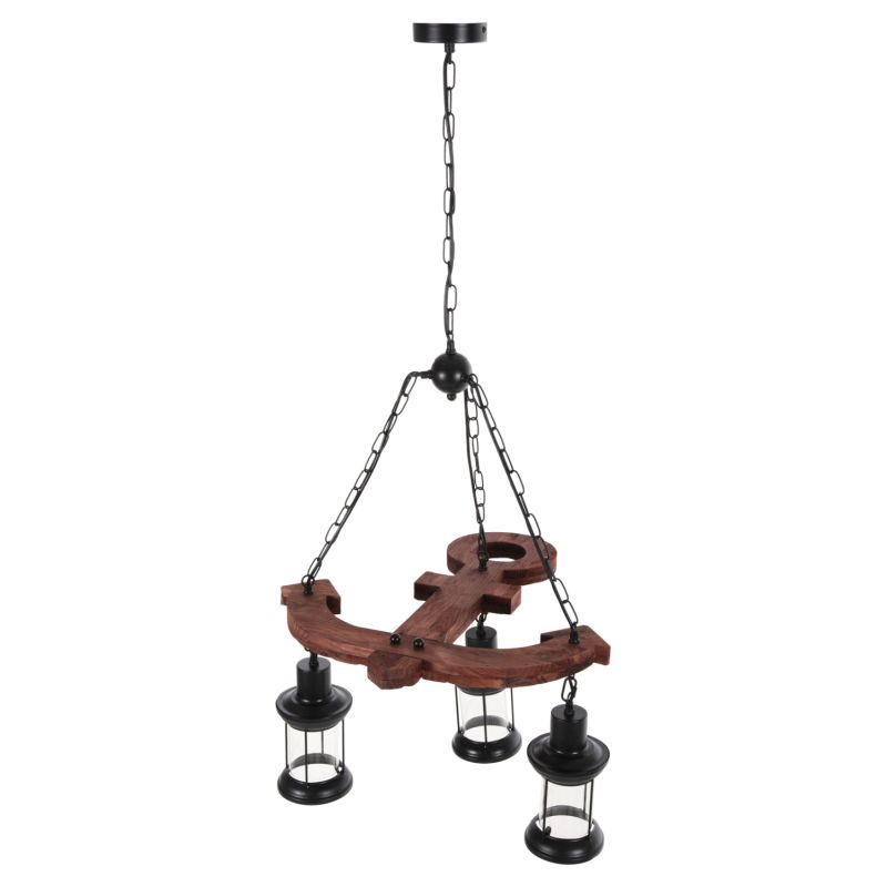 Discover the impressive 3-light ceiling fixture HM4115. A fixture that will be the center of attention thanks to its impressive and inspiring design. The 3 lanterns containing the bulbs hang from a wooden anchor, which in turn hangs from the ceiling with chains.