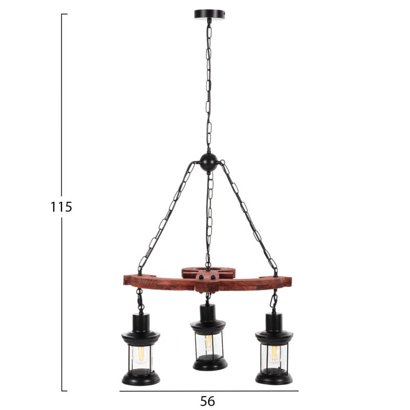 CEILING PENDANT 3-LIGHT FIXTURE HM4115 WOOD-METAL-GLASS 115H cm.