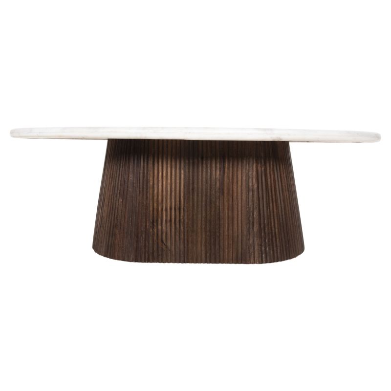 COFFEE TABLE OVAL PURGER HM9716 SOLID MANGO-WHITE MARBLE 120x70x38Hcm.