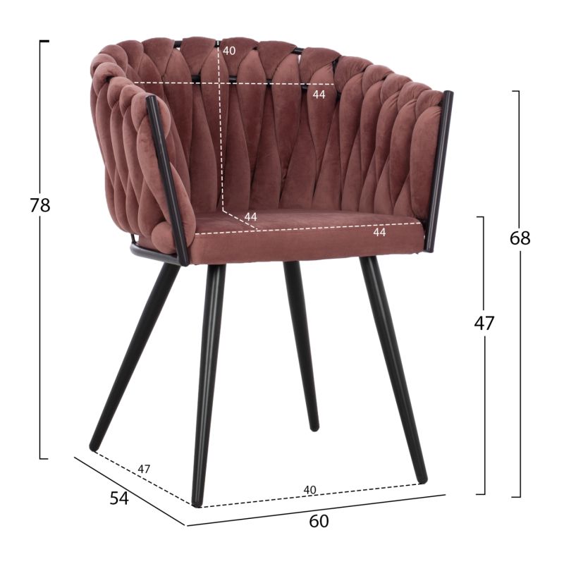 Πολυθρονάκι Luanda, από βελούδινο ύφασμα σε σάπιο μήλο απόχρωση, με μαύρα πόδια 60x54x78 εκ.