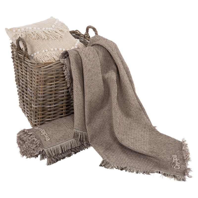 SOFA COVER-THROW WITH FRINGES DREAMTOPIA HM12165.01 IN LIGHT BROWN COLOR 295X170cm.