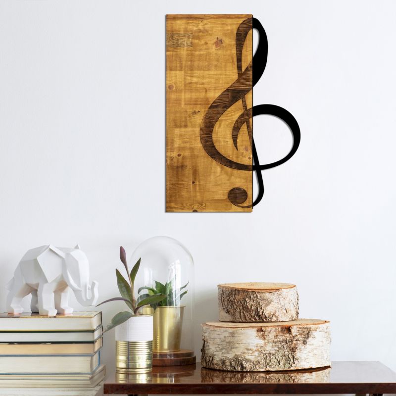 Its design is a key of the treble clef in black, half of which is on wood.