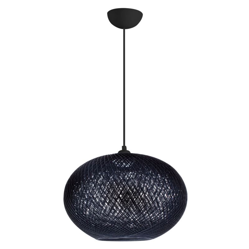 PENDANT CEILING LAMP HM7624.03 BLACK OVAL-SHAPED SPHERE, KNITTED ROPE, INDOORS