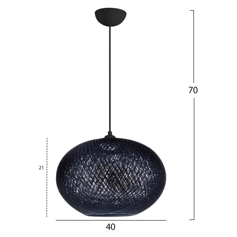 If you want to decorate your space with a lamp in boho style, this is the right choice. It is a one-light luminaire in the shape of an elliptical(oval) sphere and is lined with a thin knitted rope, of high quality and durability, in black color. The height of the luminaire is adjusted depending on the installation, so that you can configure it to the height that satisfies you.