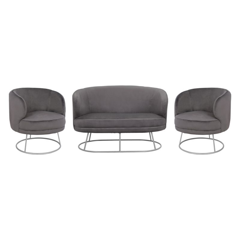 Set Living Room 2 Seater & 2 Armchairs Arien Grey Velvet with Silver Base HM11051.01