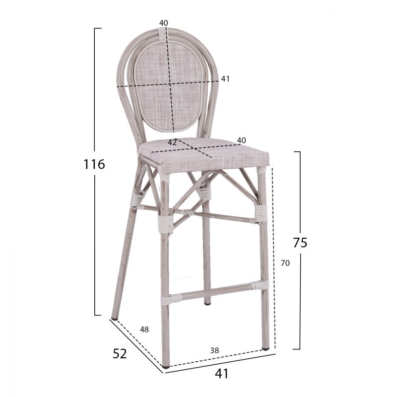 Stool Aluminum Bamboo Look White patina with textline HM5110 47x61x115cm